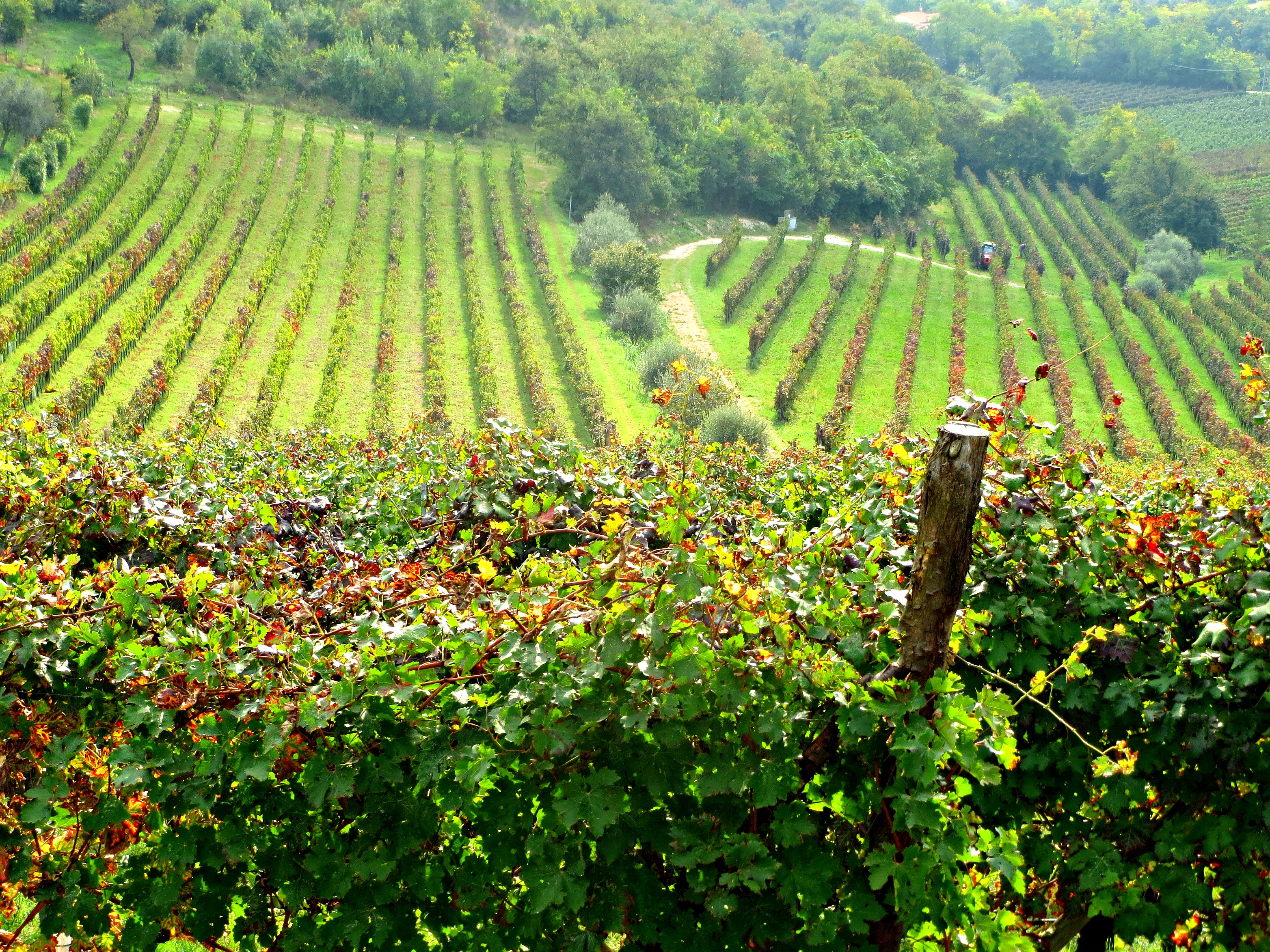 Now it’s late October and the grape harvest has finished for another year. Vine-leaves have begun to turn to gold, as I continue my walks among the bountiful vineyards of northern Italy.