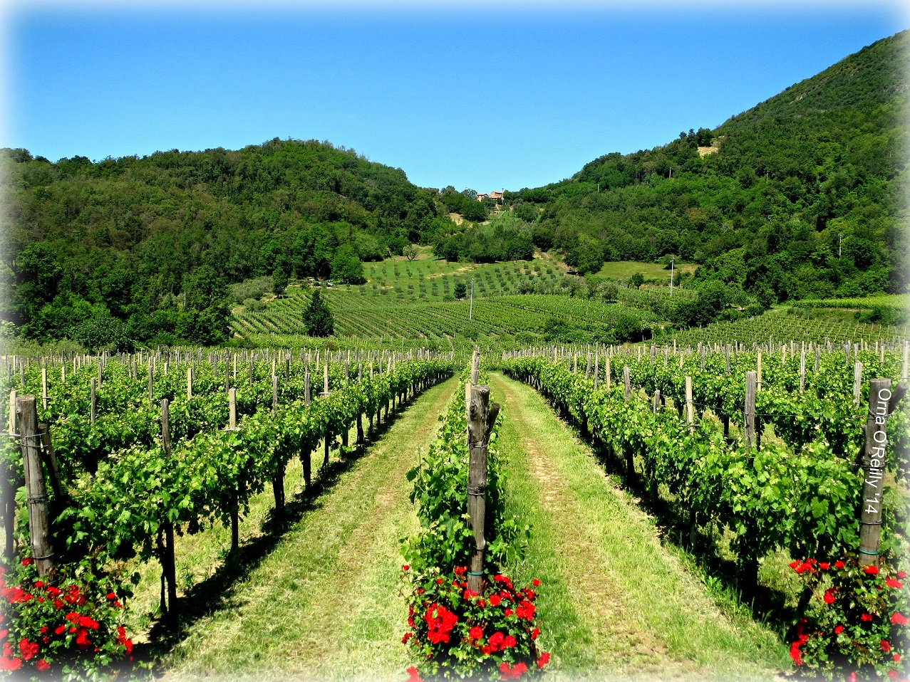 Bare, black and gnarled in winter and into the early spring, they turn leafy and brightly green in early summer as the grapes grow bigger and juicier under the hot Italian sun.