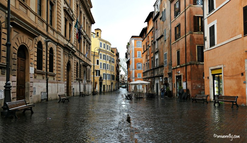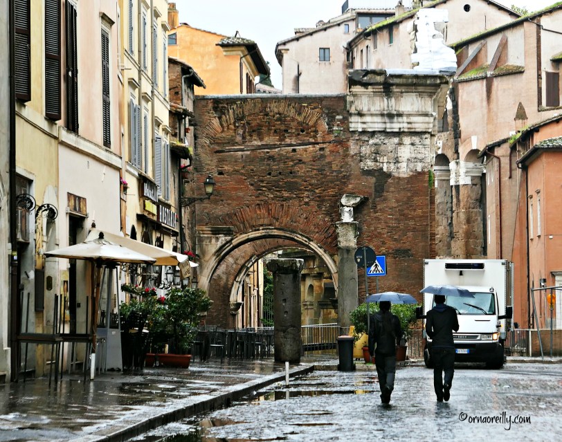 Bravely setting off into the downpour, we began our walk by entering the old Roman Ghetto, where, back in 1555, an unusually bigoted Pope Paul IV issued a Papal Bull incarcerating the Jews of Rome in this area on the banks of the River Tiber.