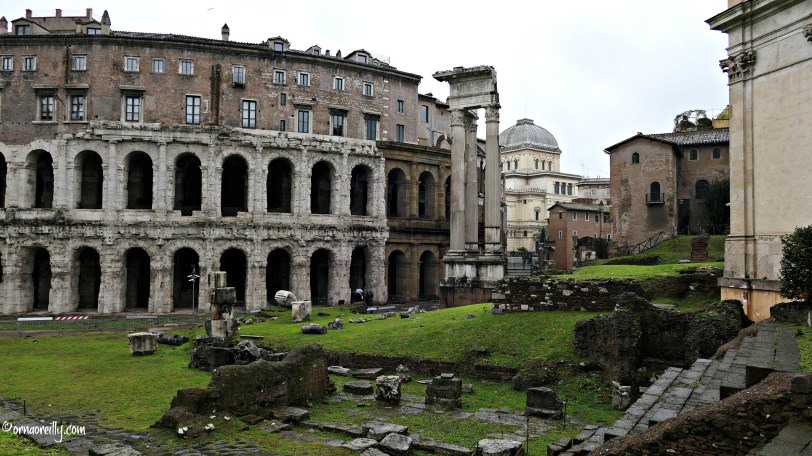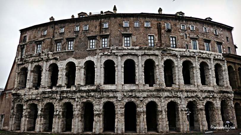 ….we approached the outer walls of the Theatre of Marcellus. I noticed that there were apartments built over the ancient teatro and I asked Melanie about them. She told me that, apparently, Sophia Loren owns one of these luxury dwellings, which are valued at many millions of Euro. It must be fascinating to live on top of what was once an ancient open-air theatre.