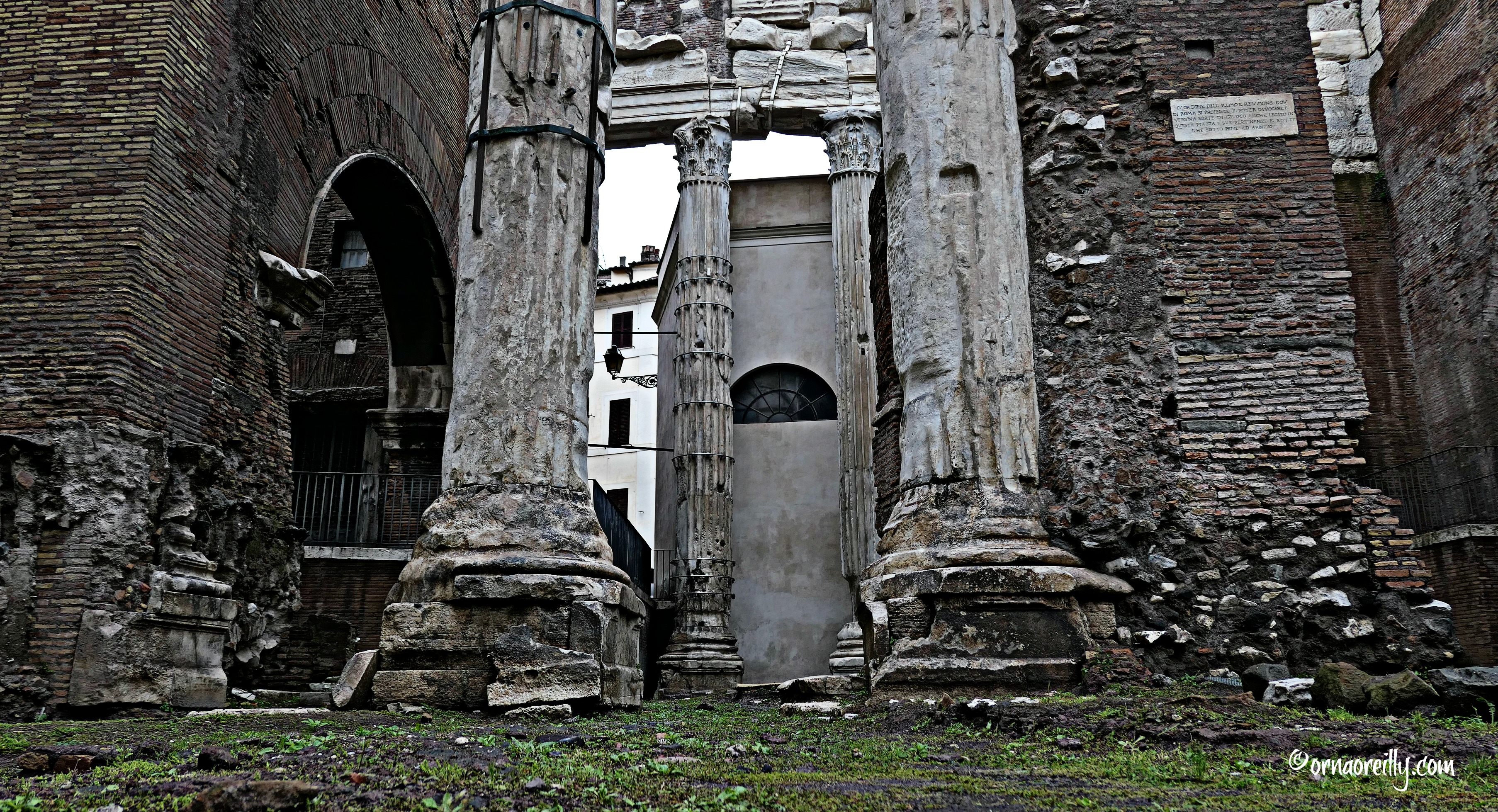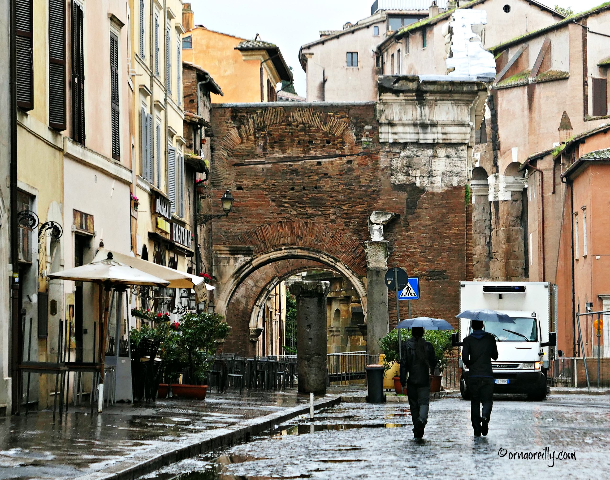 Our walk took us past the ruins of the Temple of Apollo Sosianus, then up a flight of steps, back to the Antica Caffe and a small bus which awaited ten dripping and bedraggled souls.