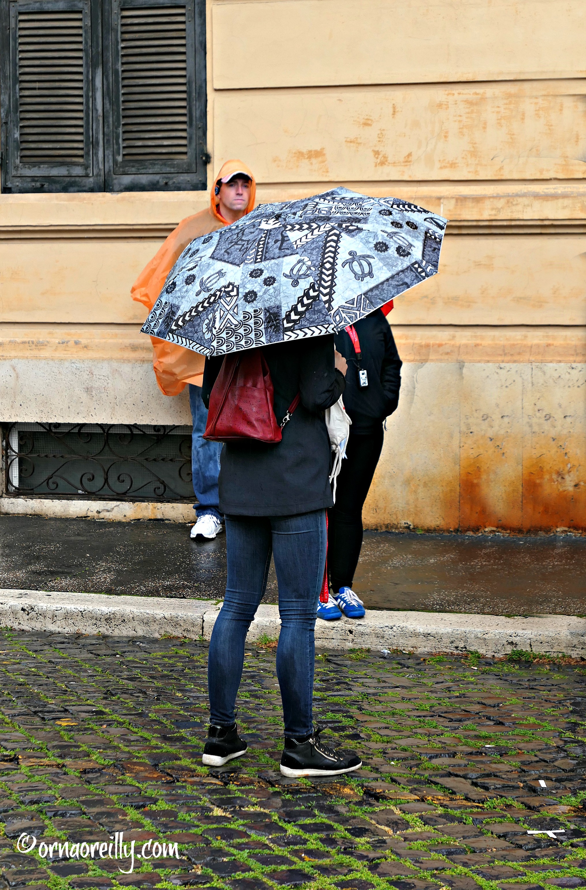 Our first stop was at the pretty Fountain of the Turtles in Piazza Mattei. A Renaissance fountain, it is decorated with turtles and positioned in this small piazza named after the powerful Mattei family. Melanie had an interesting tale to tell regarding its provenance and the rain, now coming down hard, seemed of very little consequence.