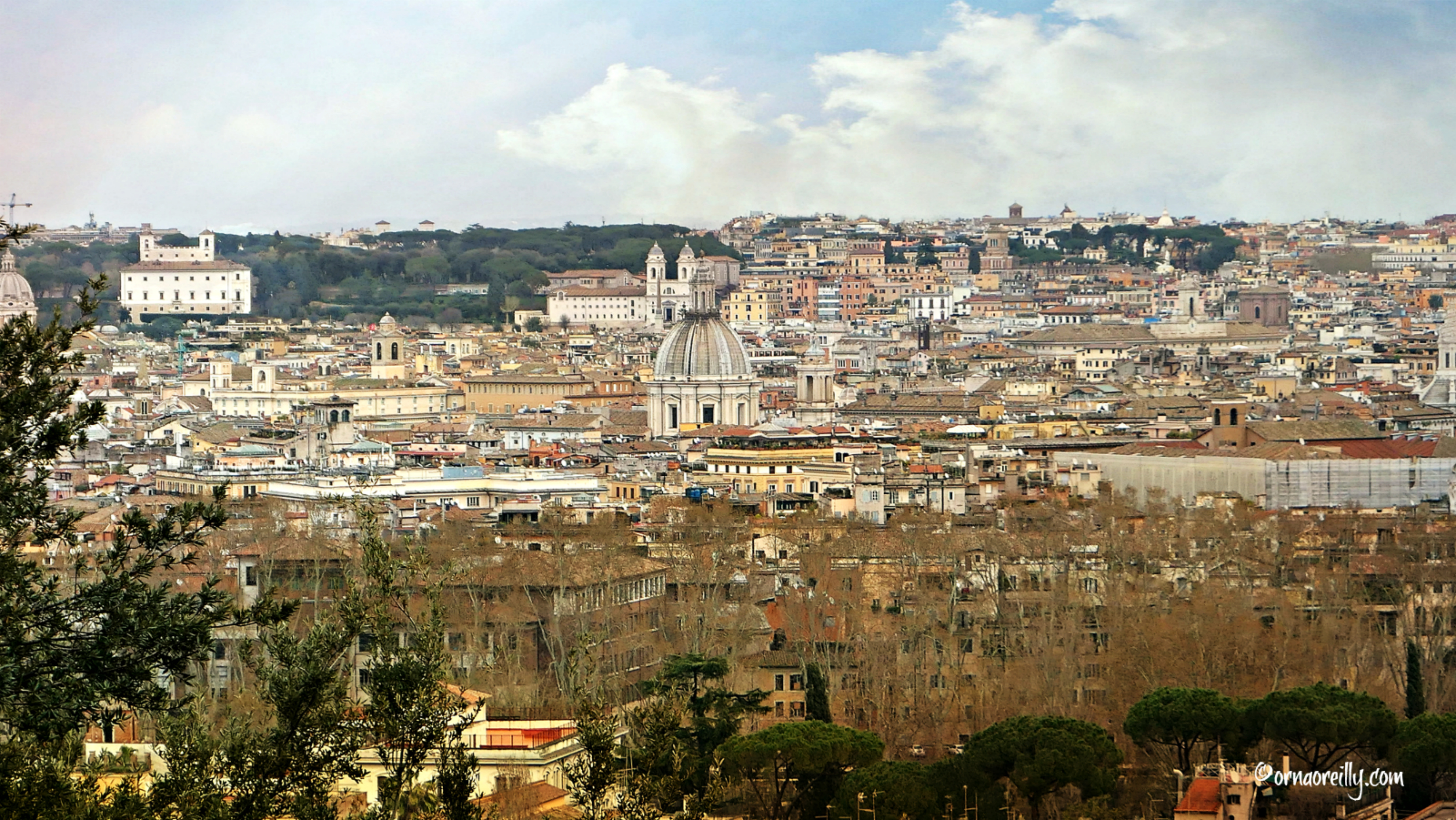 Heading uphill in much improved weather, we arrived at Piazzale Giuseppe Garibaldi on the Janiculum (Gianicolo) Hill. This is the second highest hill in Rome, but is not one of the famous Seven Hills, as it is outside the boundaries of the ancient city. At the famous overlook, the statue of the great Italian hero Guiseppe Garibaldi looks out over the city.