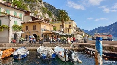 One day we visited Limone, a small town about half way up the western side of Lake Garda, known as the Lemon Coast, where the winding streets were full of a multitude of jostling visitors. This surprised me, as it was October and I would have imagined it to be off season, but the tourists poured through the town in their droves, having arrived either by coach or by boat. However, it is a splendidly scenic town and well worth a visit, backed as it is by the vertiginous sides of the northern part of Lake Garda where the hillsides are dotted by lemon houses (limonaie), which were built long ago to shelter the lemon crops from the frost.