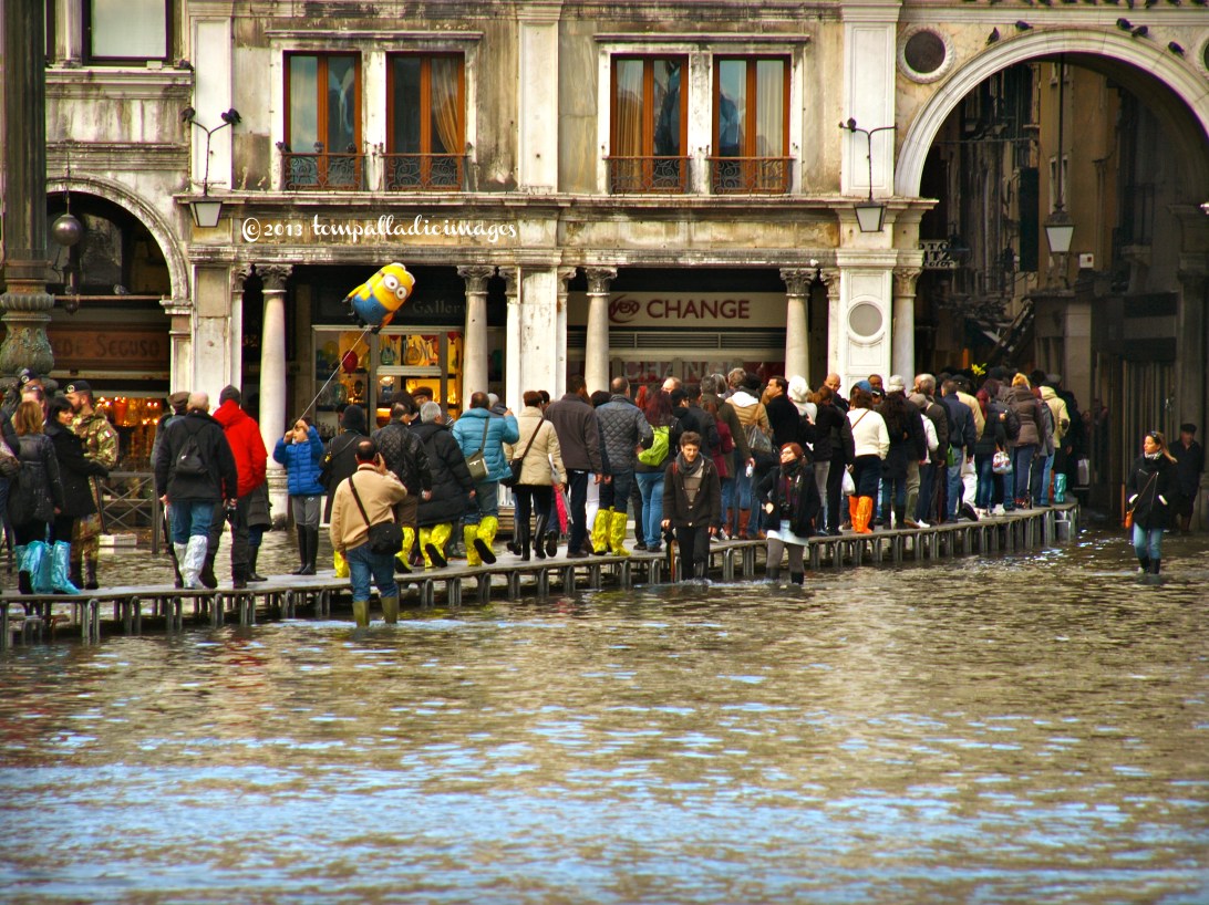 Acqua Alta: tourists on raised platforms. Photo courtesy Tom Weber http://www.the palladiantraveler.com