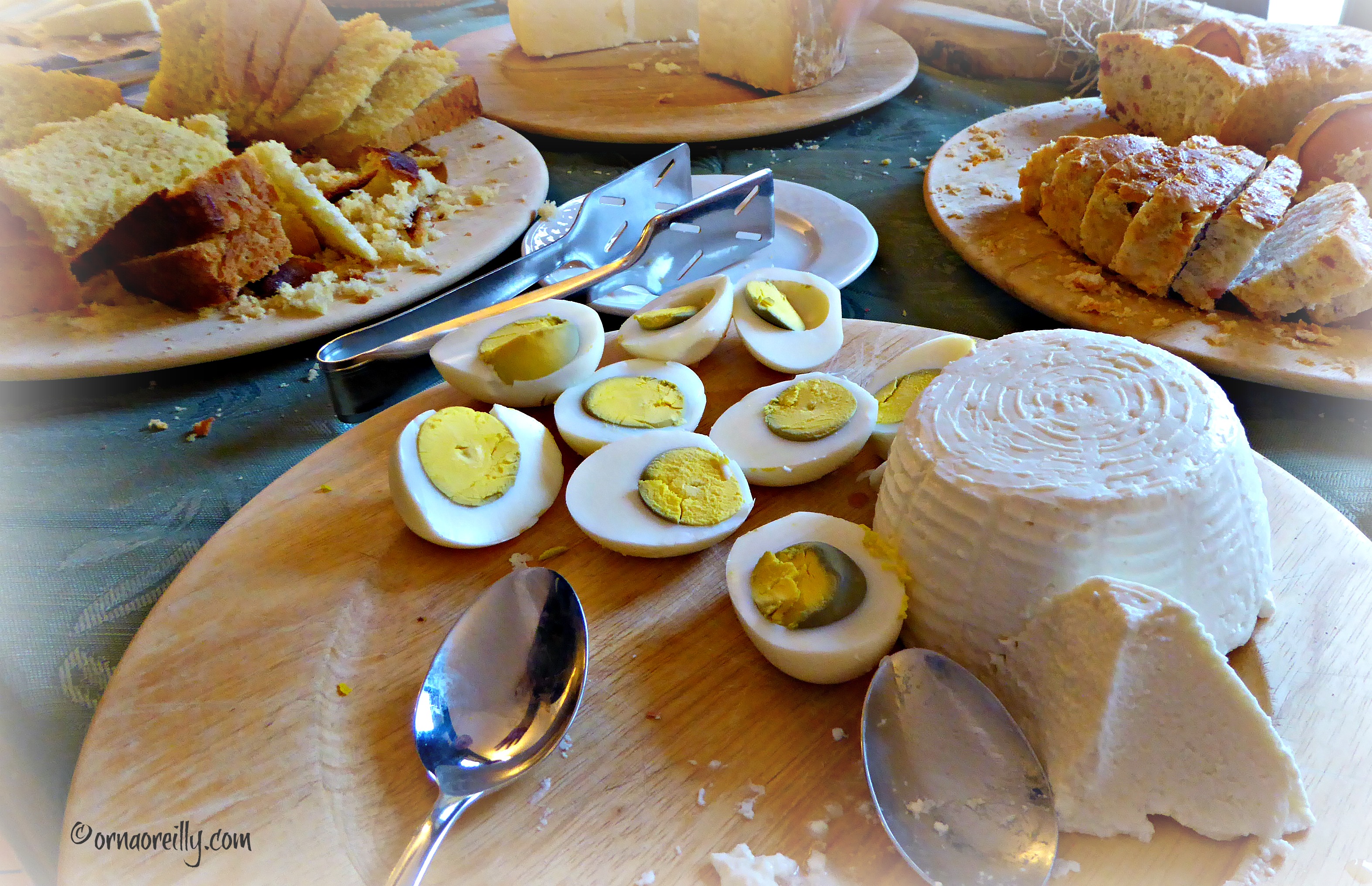 Ricotta cheese and hard boiled eggs.