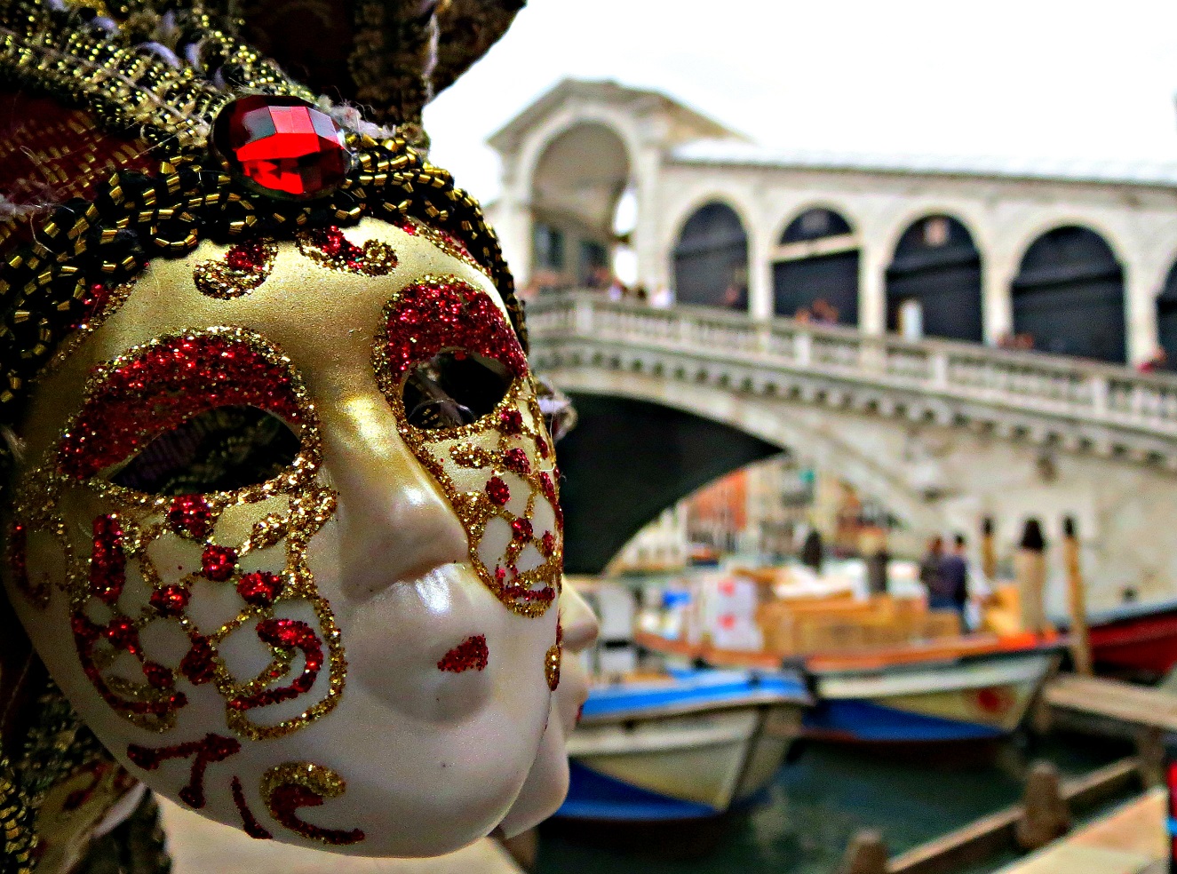 Carnival mask beside The Rialto in Venice